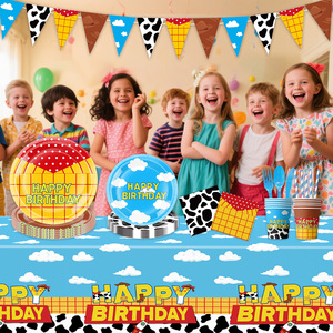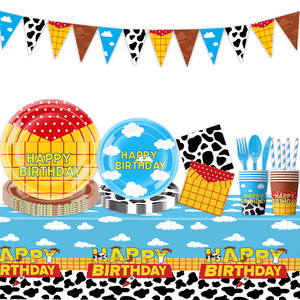 玩具总动员生日派对装饰餐具周岁礼布置用品一次性拉旗三角旗纸盘