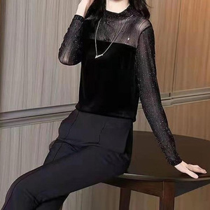[着用可能 40-85kg] 大きいサイズの女性用長袖トップス、新しいスタイルのメッシュ気質、ファッショナブルなハーフタートルネックボトリングシャツ