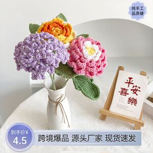 厂家直销手工钩织花荷花牡丹花束七夕送女友好物毛线仿真花束跨境
