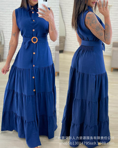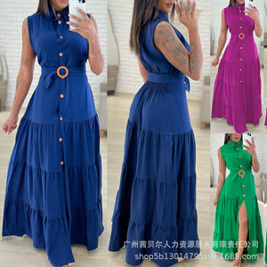 ODS5469欧美时尚纯色腰节开衩长裙