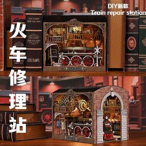電車修理ステーション diy キャビンモデルハウス移動電車手組み立て木製ブックエンド装飾品ビルディングブロックギフト