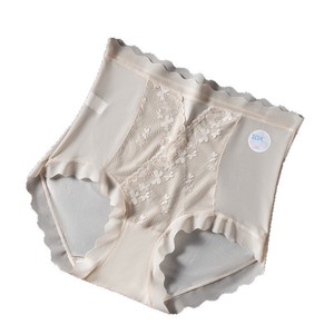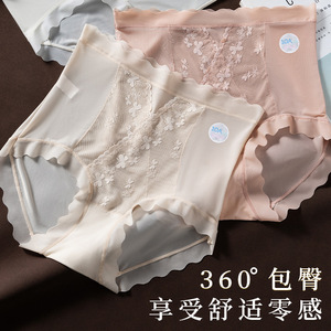 10A桑蚕丝抑菌高腰冰丝无痕蕾丝内裤女提臀微收腹加大码三角内裤