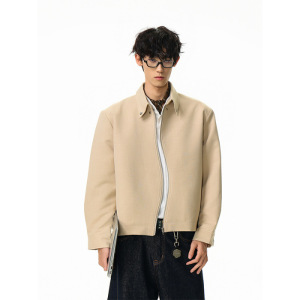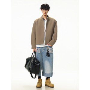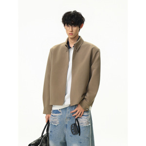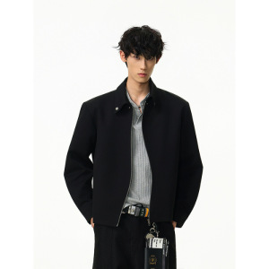 アメリカンスタイルのSジッパー付き黒ジャケット、メンズトレンドブランド、新作秋物、ゆったりとした個性的なデザイン、イケメン風ショート丈トップス