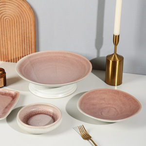 法式复古陶瓷沙拉盘渐变色餐具复古风深盘水果点心酒店陶瓷批发