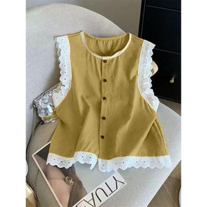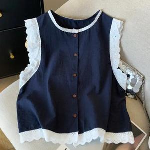 Xiaoxiangfeng レースステッチノースリーブシャツ女性のための夏の 2025 新しいファッション気質ルーズ痩身多用途トップ