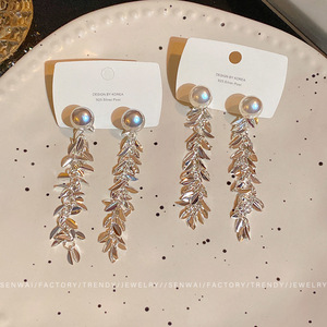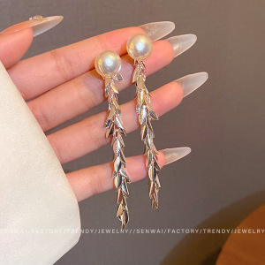 波光麦穗珍珠长款流苏耳环女小众设计高级感耳钉精致时尚气质耳饰