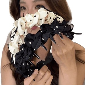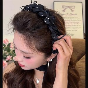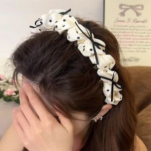 波点蝴蝶结发箍女褶皱宽甜美气质头箍压发高颅顶发卡2024年新头饰