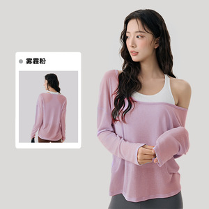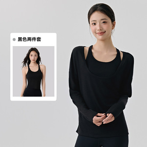 瑜伽服女套装高级感叠穿两件套透气长袖罩衫普拉提带胸垫运动背心