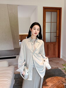 DIGM | 2025秋季极简风高级感锁边天丝棉宽松长袖衬衫女A09025