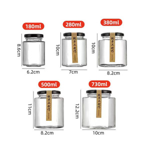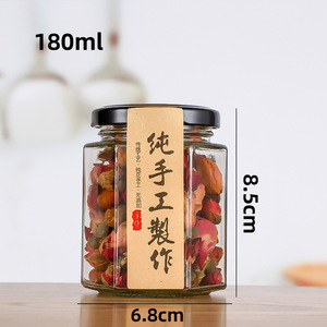 六角储物罐厨房用玻璃酱菜瓶透明大容量蜂蜜瓶空瓶500ml现货批发