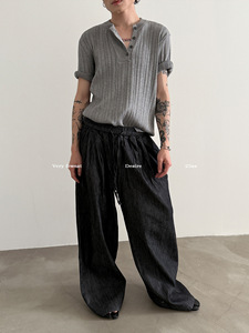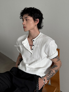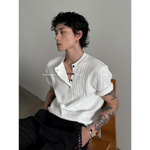 VERY FEWEST 高弹肌理感套头针织衫夏季通勤老钱风亨利领短袖T恤