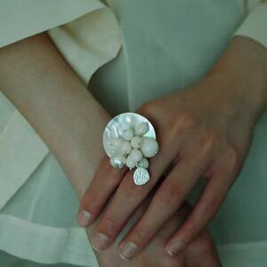 几问瞳胶囊系列-黄玉石葡萄贝壳串珠戒指立体天然吊坠项链套装女