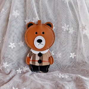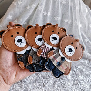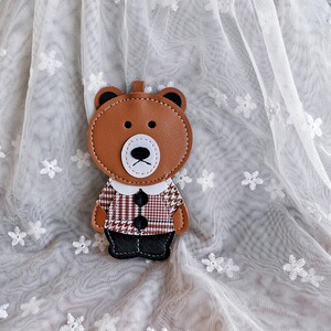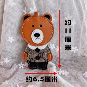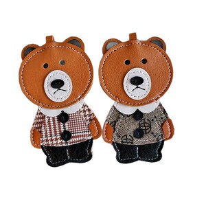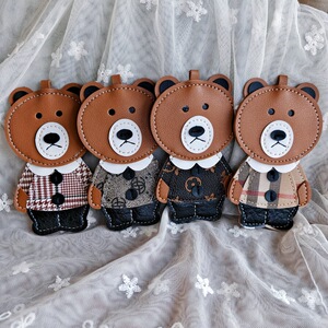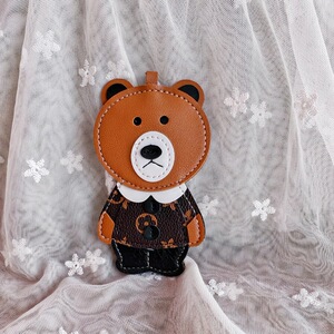 创意皮革经典老花卡通小熊饰品配件情侣包包挂饰钥车匙扣服装配饰