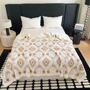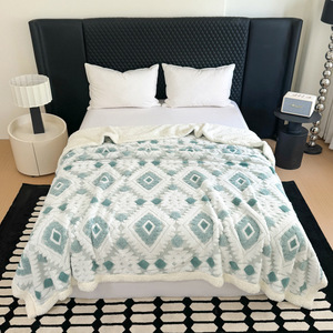 轻奢阳离子提花镂空塔芙绒毛毯加厚保暖午睡盖毯羊羔绒双层沙发毯