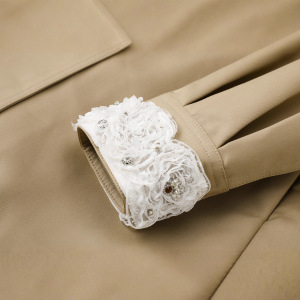 现货2025秋新款宽松蕾丝娃娃领中长款外套LF25Q21SC247