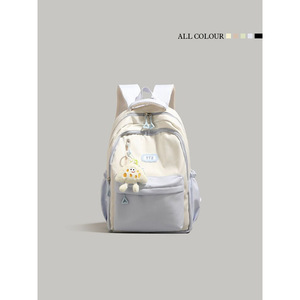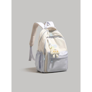 高级感撞色双肩包2025新款时尚女大学生书包大容量背包短途旅行包