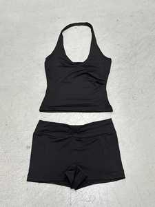 跨境美式休闲套装辣妹纯色挂脖美背瑜伽服套装健身运动短裤两件套