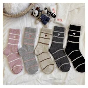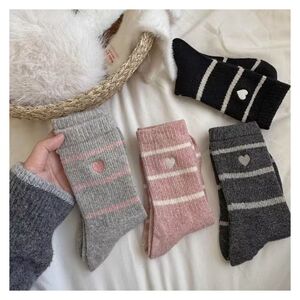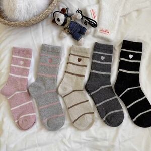 女童袜子秋冬韩系爱心袜子儿童秋冬款中筒袜保暖学生条纹长筒袜子