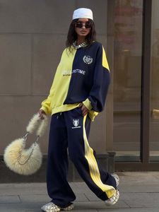 2025新款休闲运动装饰套装女装秋款小众黄蓝拼接卫衣长裤两件套女