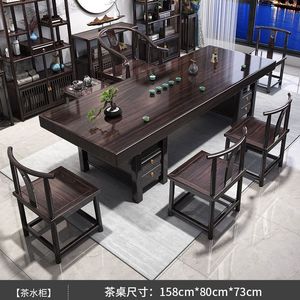 新中式黑檀色实木茶桌大板紫檀木茶桌办公家用两用茶桌一体一整套