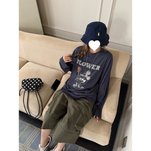 韩国ins小众减龄俏皮卡通印花休闲百搭宽松纯棉舒适长袖T恤上衣女