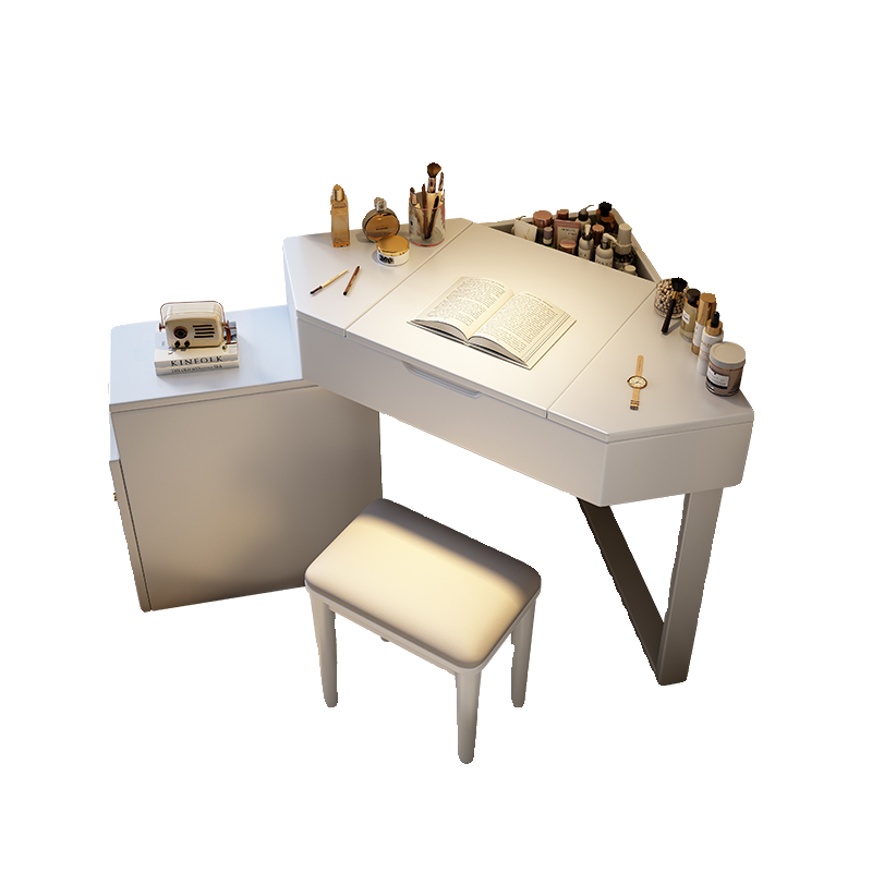 实木转角三角形梳妆台小户型卧室靠墙拐角化妆桌收纳盒一体梳妆台