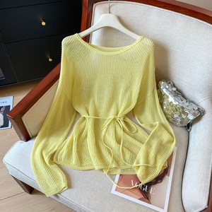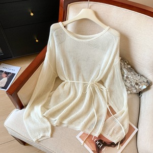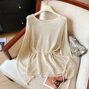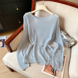 广州十三行高货爆款~圆领长袖针织衫女夏新洋气宽松显瘦上衣罩衫