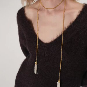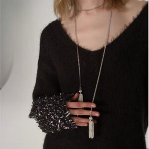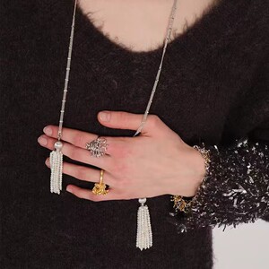 新款法式烟花白贝母串珠流苏项链高级感小众轻奢简约百搭长项链