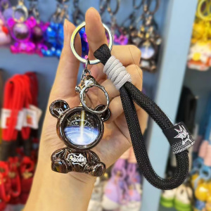 卡通亚克力电镀小熊钥匙扣星空创意男士汽车钥匙挂件情侣款钥匙链