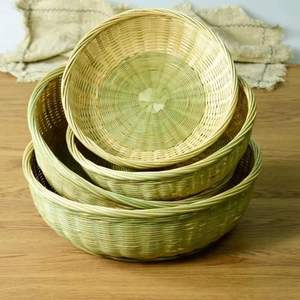 竹编竹篮子竹筐带底座家用水果篮果盘手工竹制品馒头筐点心篮竹篮