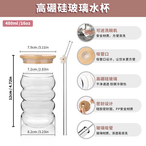 跨境亚马逊热销高硼硅玻璃杯耐高温带吸管咖啡可乐杯ins便携水杯