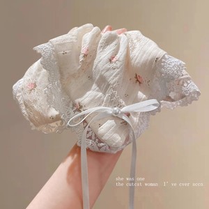 海棠春色~粉色碎花蝴蝶结蕾丝方巾大肠发圈女韩系大号头绳发饰