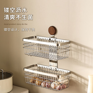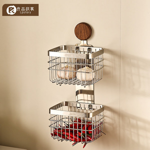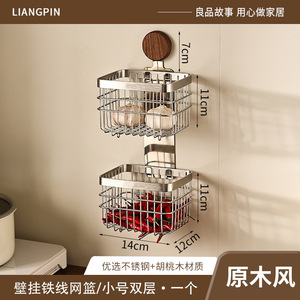 厨房胡桃木葱姜蒜收纳盒免打孔壁挂式多功能蔬菜水果挂篮