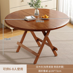 折叠餐桌家用圆桌小户型木桌吃饭餐桌户外多功能便携出租房摆摊桌