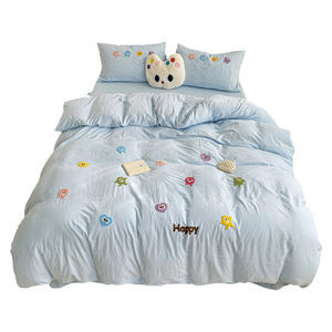 ins風ウォッシュコットンベッドシーツ4点セット2025新作タオル刺繍ベッドシーツ1人寮四季通用3点セット