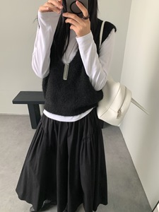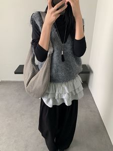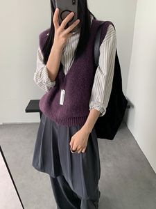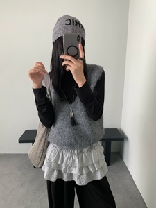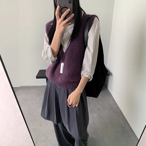 韩系简约羊毛大V领无袖针织马甲秋冬新款气质显瘦叠穿外搭上衣女