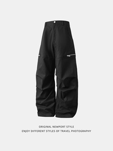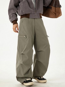 アメリカンレトロプリーツスナイパーカジュアルパンツメンズ秋ジッパー空挺部隊パンツトレンディなブランドルーズストレートオーバーオールパンツ