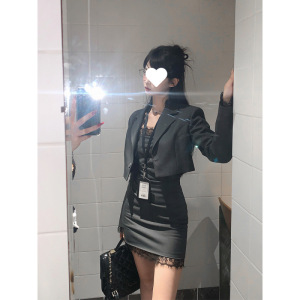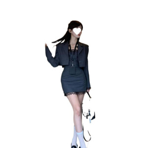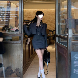 巴比姨黑色西装外套女早秋高级感复古休闲小个子外搭吊带裙套装