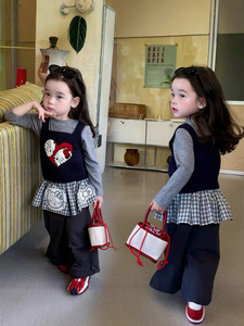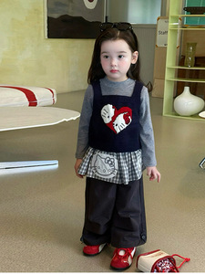 2025女童秋款套装猫咪毛衣马甲灰色内搭卡通屁帘裤