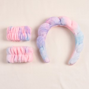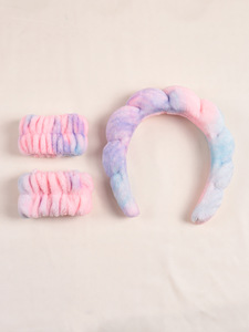 亚马逊洗脸护腕手带爆款渐变色发带套装海绵麻花云朵头箍组合发饰