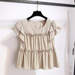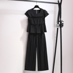黑色雪纺冰丝短款上衣配阔腿裤子两件套装女2025夏季新款时尚洋气