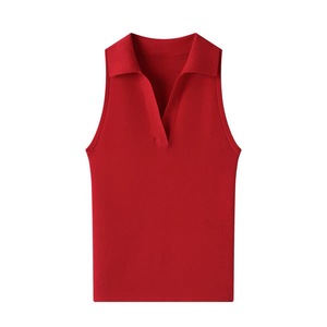 现货 2025秋季新女休闲时尚百搭修身polo领针织衫马甲MBE3SWT027