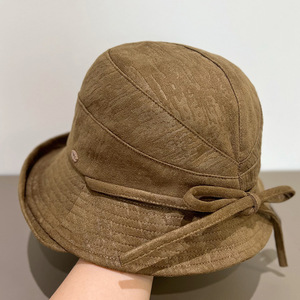 日系蝴蝶结渔夫帽女秋冬逛街加厚保暖帽子时尚翘边盆帽百搭显脸小