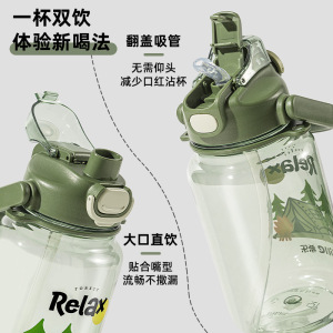 希乐大容量水杯女夏季便携吸管杯男生健身水壶tirtan户外运动杯子