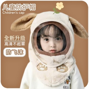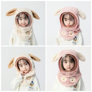 儿童帽子秋冬户外骑车防风面罩男女童护耳一体可爱保暖毛绒套头帽