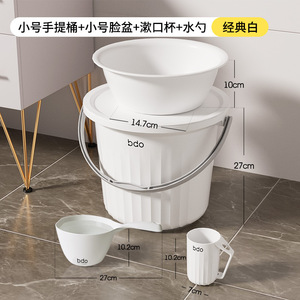 【4点セット】蓋付き小バケツ+26ユーロ洗面器白+水スプーン白+マウスウォッシュカップ★★★