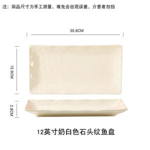 12英寸石头纹鱼盘奶绿+奶白各一个