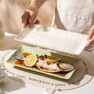2025新款鱼盘家用奶油风装鱼盘陶瓷寿司盘创意纯色早餐盘大号菜盘