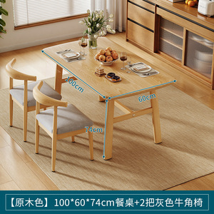 【高性价比组合】原木色100*60*74cm+两把灰色牛角椅加粗加固