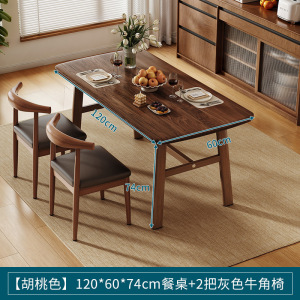 【高性价比组合】胡桃色120*80*74cm+三把黑皮牛角椅加粗加固